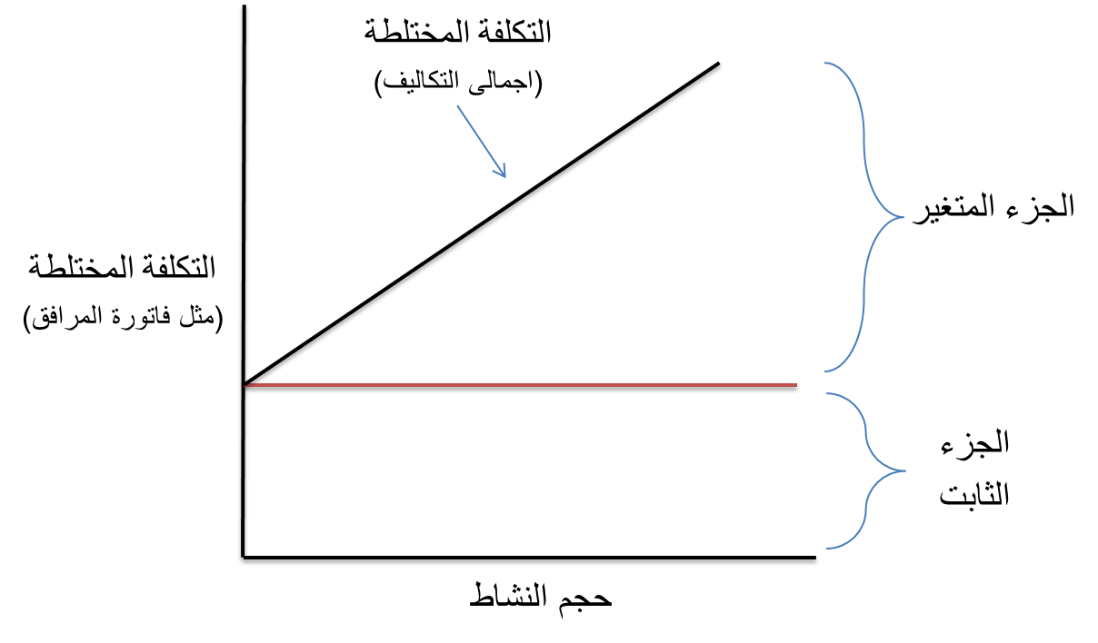 رسمة تضم كلاً من التكاليف المتغيرة والتكاليف الثابتة والتكاليف المختلطة :