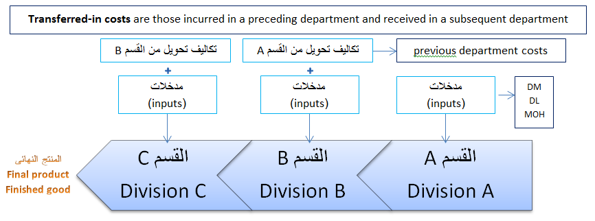 تكاليف التحويل (Transferred-in costs)التكاليف المحولة هي تلك التي يتم تكبدها في قسم سابق ويتم استلامها من قسم لاحق.